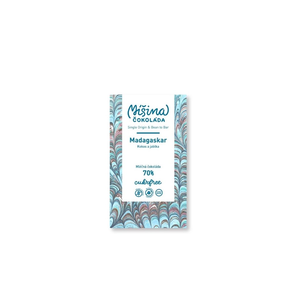 CUKRFREE mléčná čokoláda 70% Madagaskar s kokosem a jablky