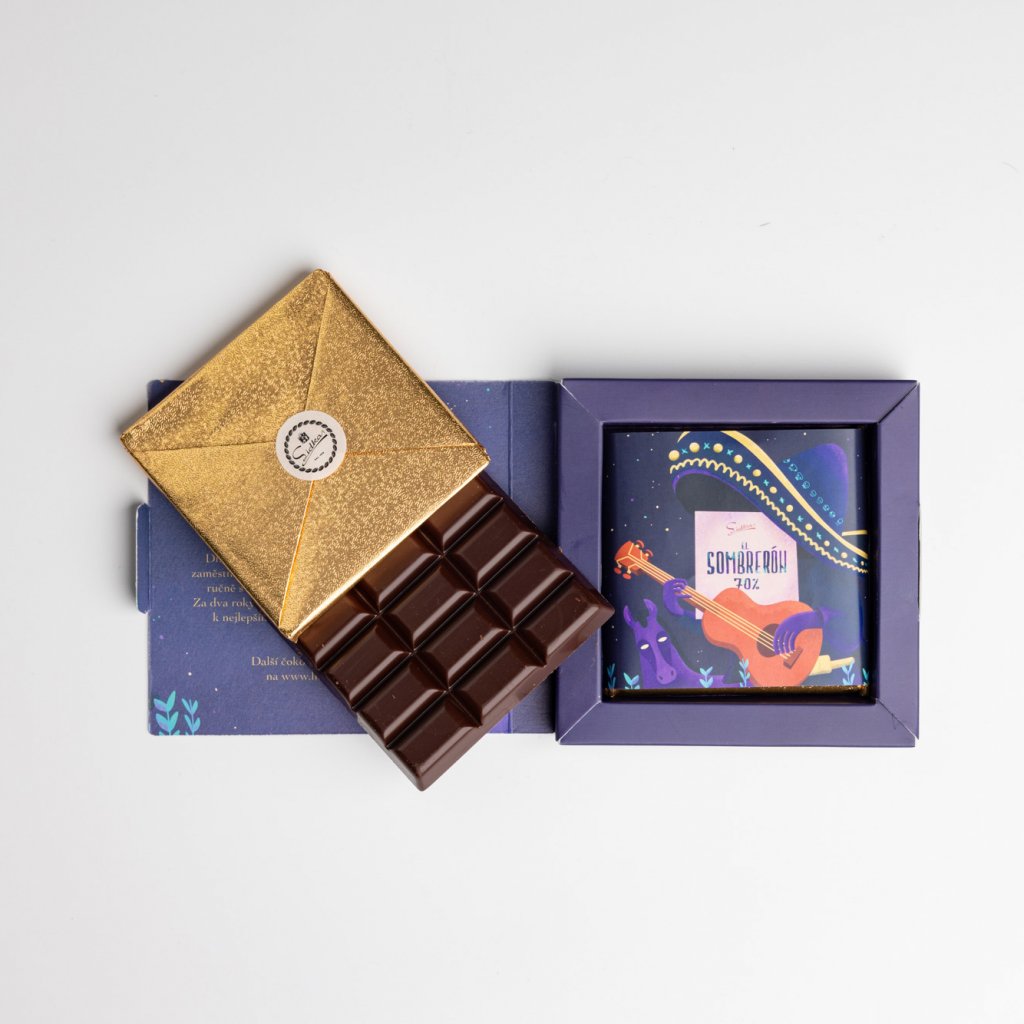 Složení: kakaové boby, třtinový cukr, kakové máslo. Obsah kakaové sušiny min. 70 %.