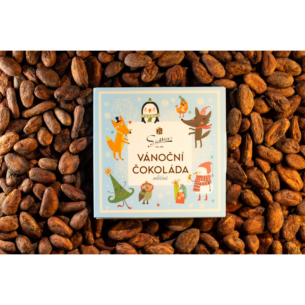 Složení: Kakaové boby 50%, sušené mléko, třtinový cukr, kakaové máslo, vánoční koření (skořice, nové koření, hřebíček, anýz, koriandr, fenykl, muškátový květ). Obsah kakaové sušiny min. 50%.